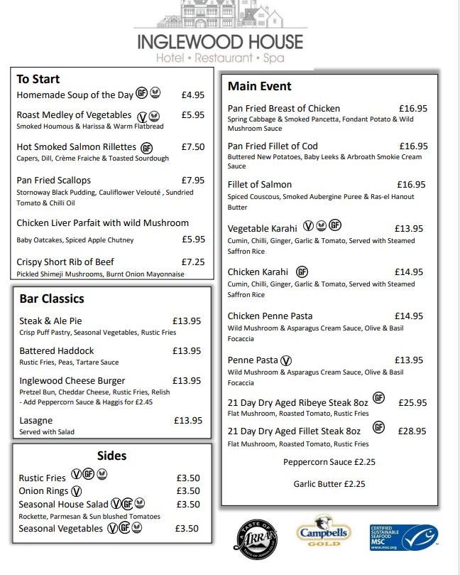 From a 'Carpaccio of Beetroot' to 'Smoked Duck Breast and 'Roast fillet of Venison' to 'Goan Chicken Curry' our new menu has something on it for everyone! And yes, our famous 'Sticky Toffee Pudding' is on the menu!